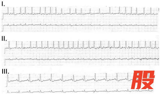 患者在直肠指检前(I,II)和直肠指检后(III)的心电图。丨Ruan, 2010.