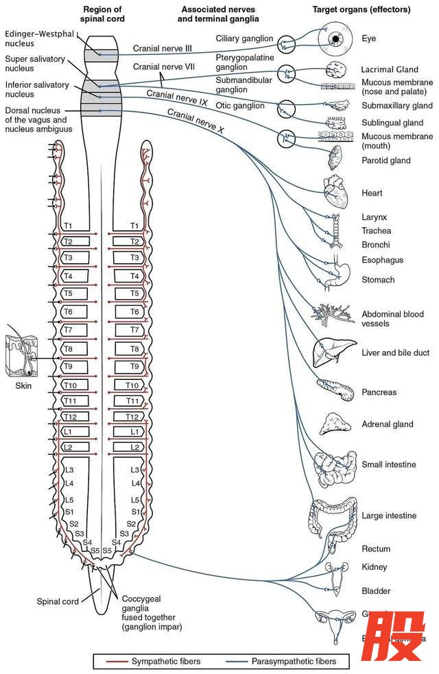 自主神经系统组成丨OpenStax College - Anatomy & Physiology, Connexions Web site. CC BY 3.0